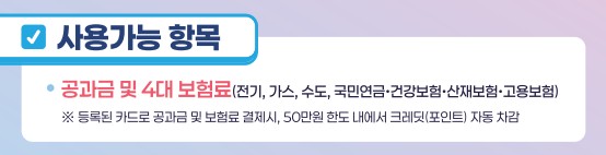 최대 50만원 상당의 부담경감 크레딧이 지급되며, 아래 공공요금 및 보험료 납부에 사용할 수 있습니다: